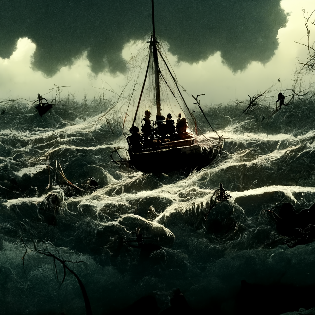 Die Tage schienen endlos. Auf dem Meer der Toten wurde es nie Nacht, sodass nicht zu bestimmen war, wie lange er bereits ruderte. Stets glomm ein blass gräuliches Leuchten aus dem wolkenverhangenen Himmel. Er fragte sich, ob er nicht langsam den Verstand verlor. Unaufhörlich hoben und senkten sich die Ruder. Nach einer gefühlten Ewigkeit begann sich der Barde in Erinnerungen aus besseren Tagen zu flüchten. Während er voller Gram auf seine geschundenen Hände blickte, erinnerte er sich daran, wie er das erste Mal auf seiner Laute gespielt hatte und an das Gefühl und die Freude, die ihm die Musik gebracht hatte. Bald verschwamm sein Blick und Tränen glitten unaufhörlich über sein Gesicht.